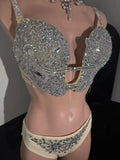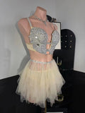 Luxury Gold Full Diamond Sexy Bikini Dress Performance Outfit Party Bar Nightclub Singer Dance Stage Prom Birthday Evening Wear