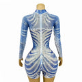 Luxury Handmade Flashing Full Little Rhinestones Mesh Bodysuit Party Show Leotard Rompers Stage Performance Pole Dance Costume