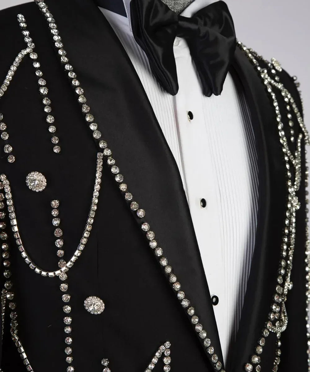 Make your special day unforgettable with this Luxury Men Wedding Suit set: a two-piece single-breasted tuxedo featuring a refined shawl lapel and elegant crystal chain detailing. Designed for the modern groom and style-conscious guests, this blazer-and-trousers ensemble blends timeless formalwear tradition with contemporary, eye-catching accents for weddings, galas, and upscale parties.