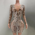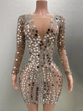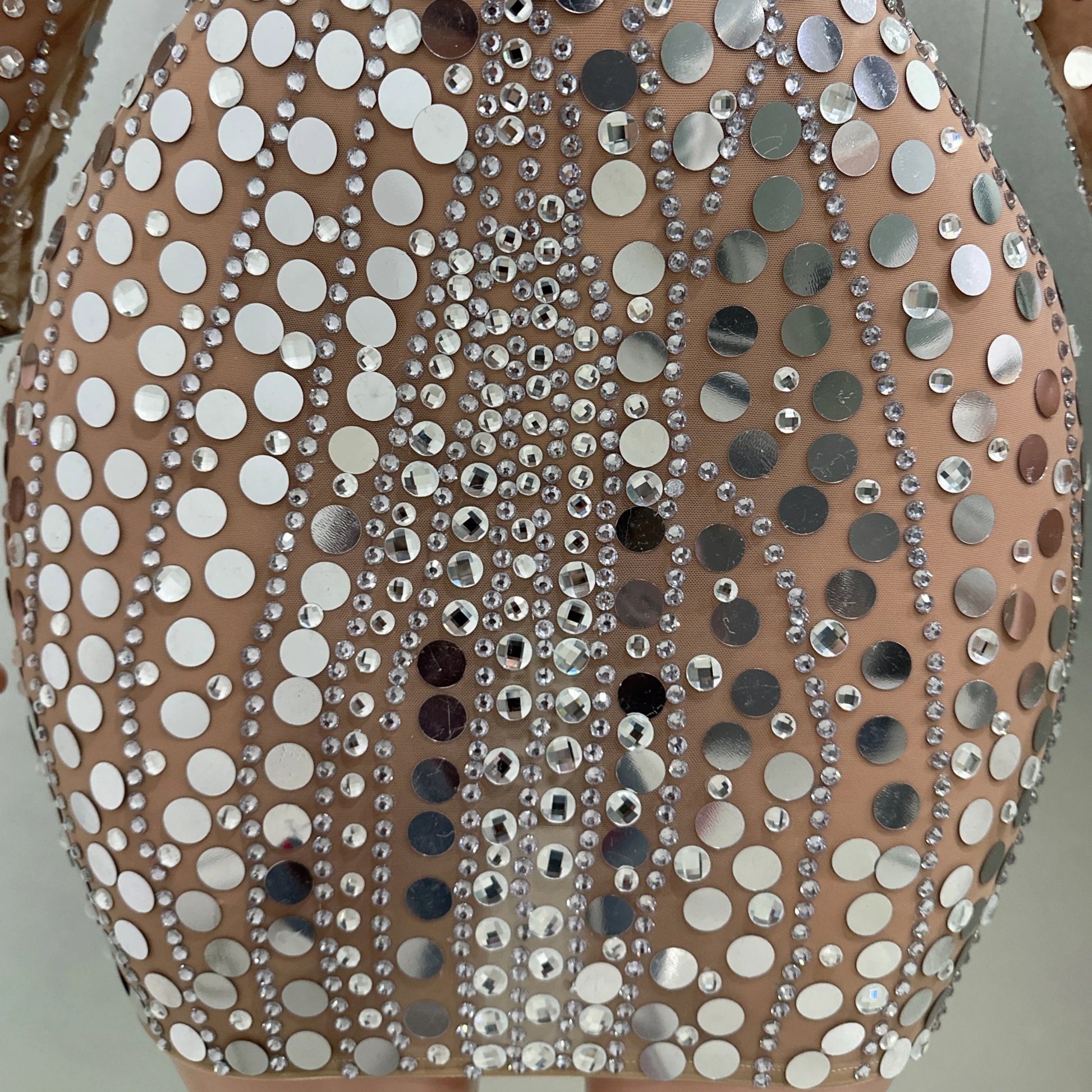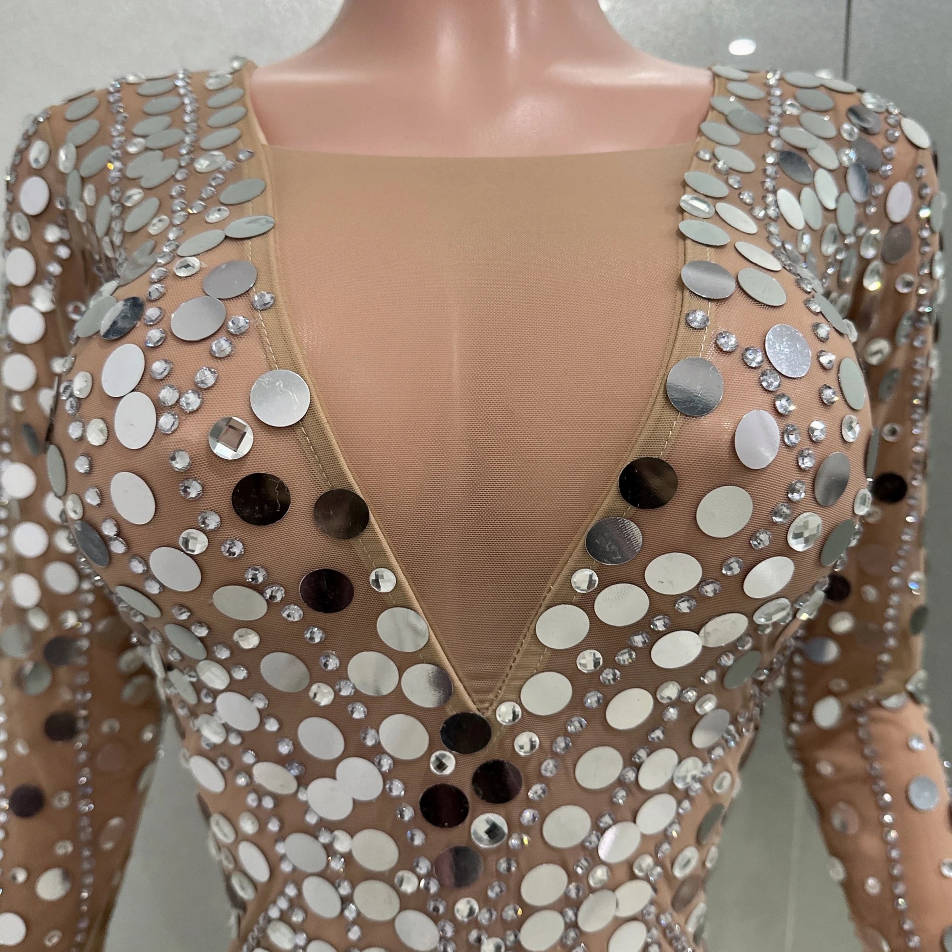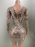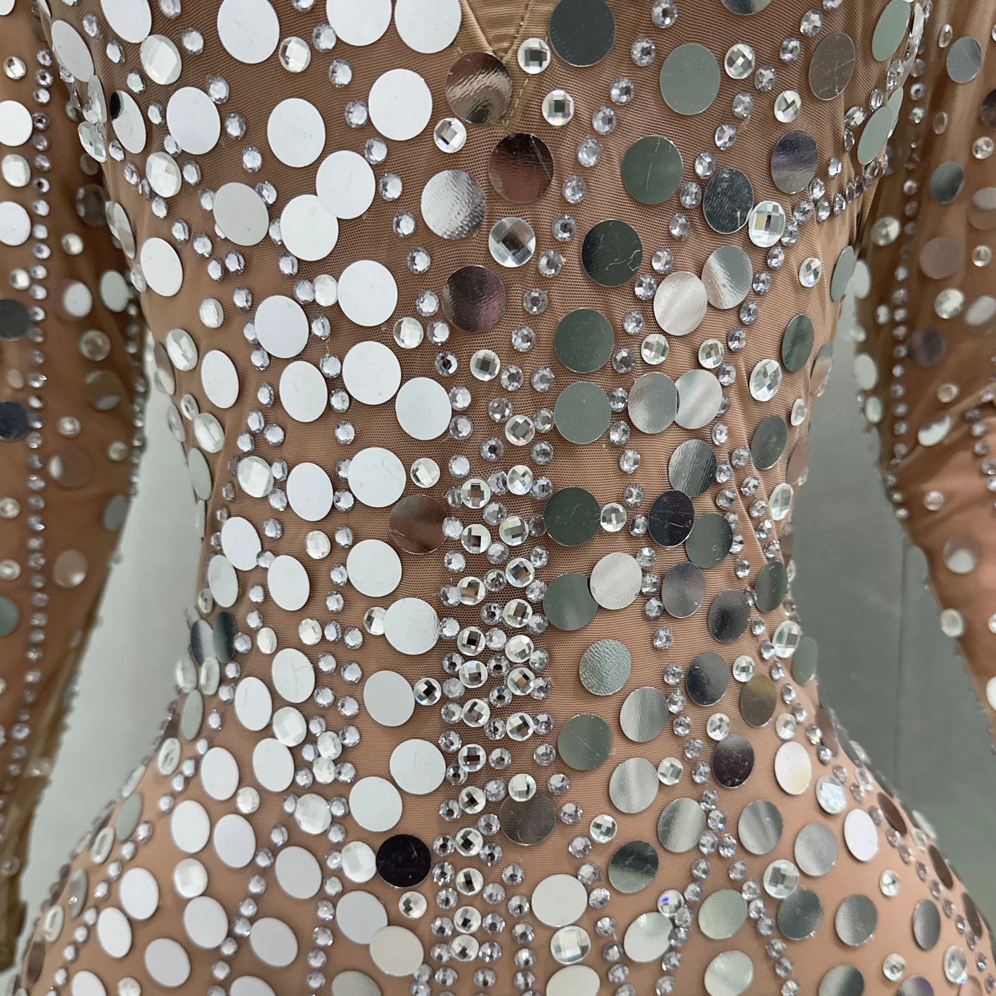Luxury Mirror Surface Sequins Sexy See-Through Sheath Dress Evening Party Performance Costume Nightclub Singer Dancer Stage Wear