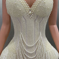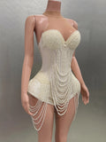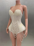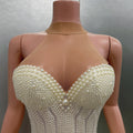 Luxury Pearls Beading Sexy Halter Backless Bodysuit Evening Party Performance Costume Bar Nightclub Singer Dancer Stage Wear