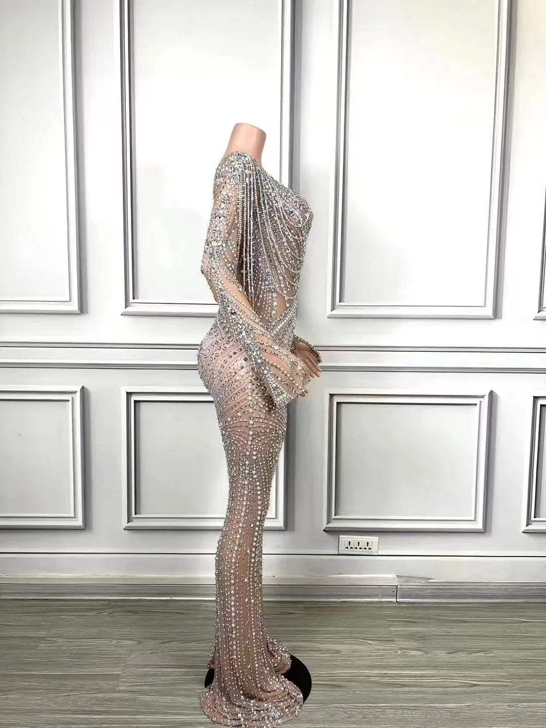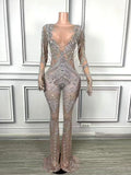 Luxury Rhinestones Chain Sheath Jumpsuit Women Evening Party Performance Costume Nightclub Singer Dancer Photoshoot Stage Wear