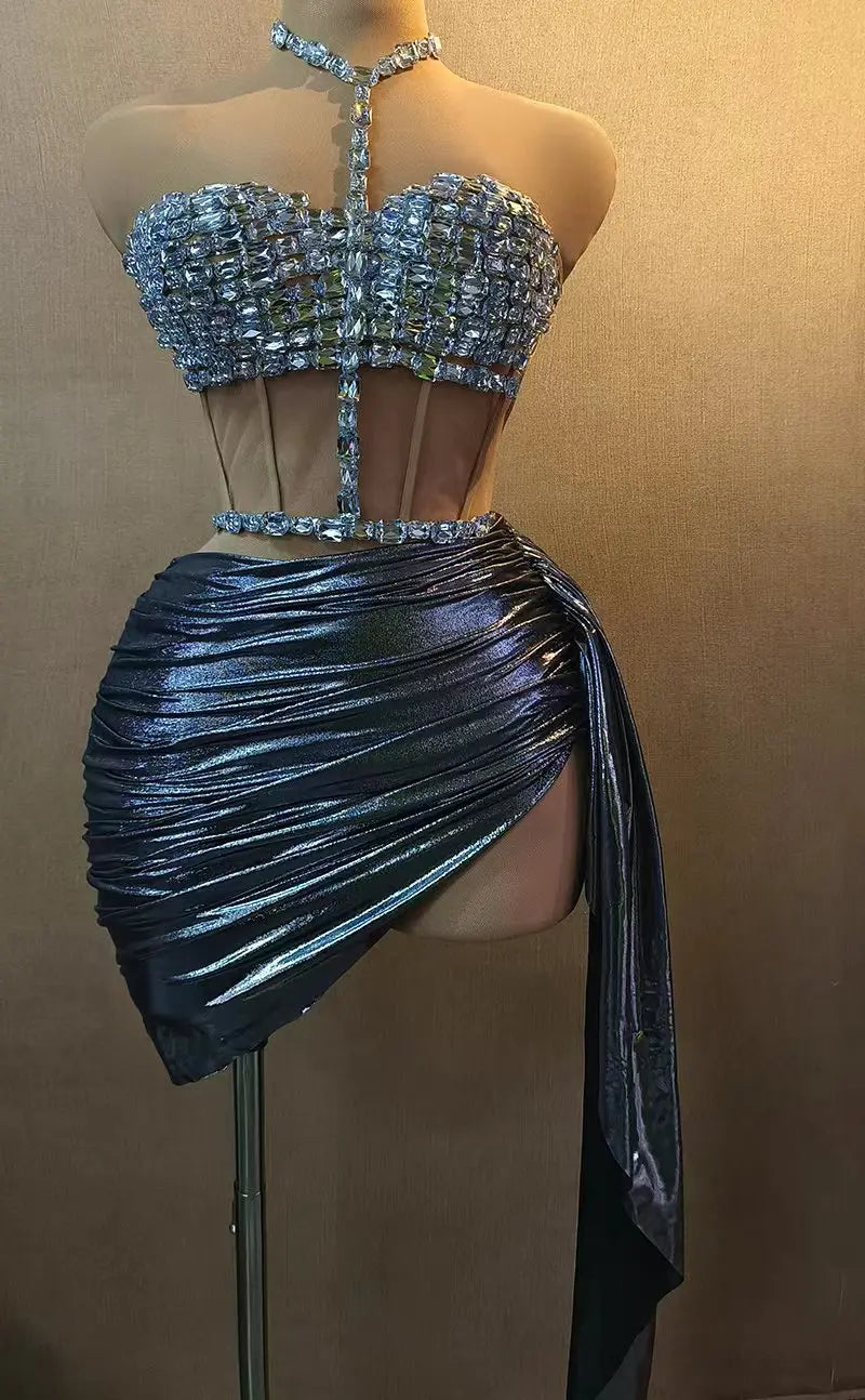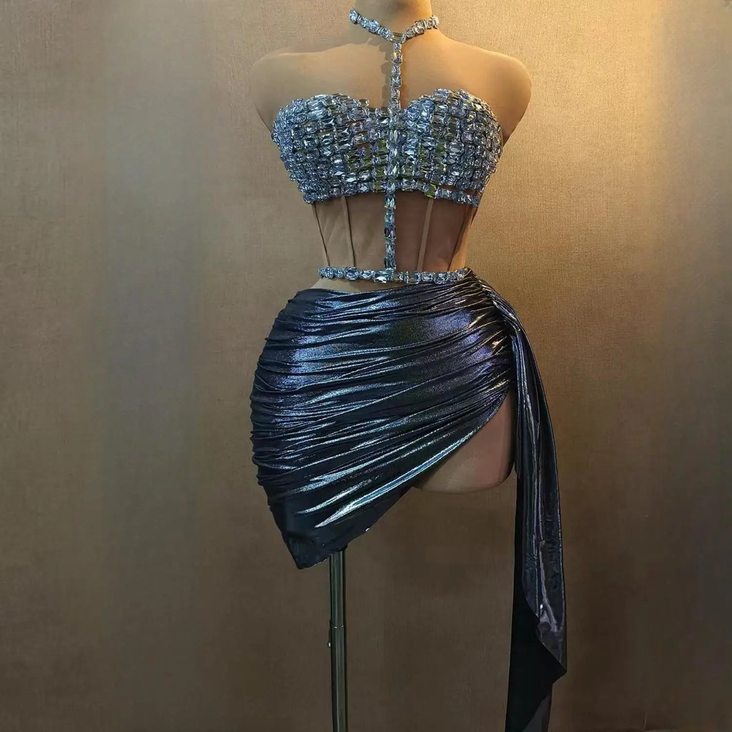 Glamorous Crystal Embellished High Low Bodycon Dress for Elegant Parties and Birthdays