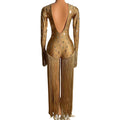 Luxury Wowen Sexy Long Sleeve Tassel Gold Backless Jumpsuit Performance Dance Costume Nightclub Stage Wear Party Rompers