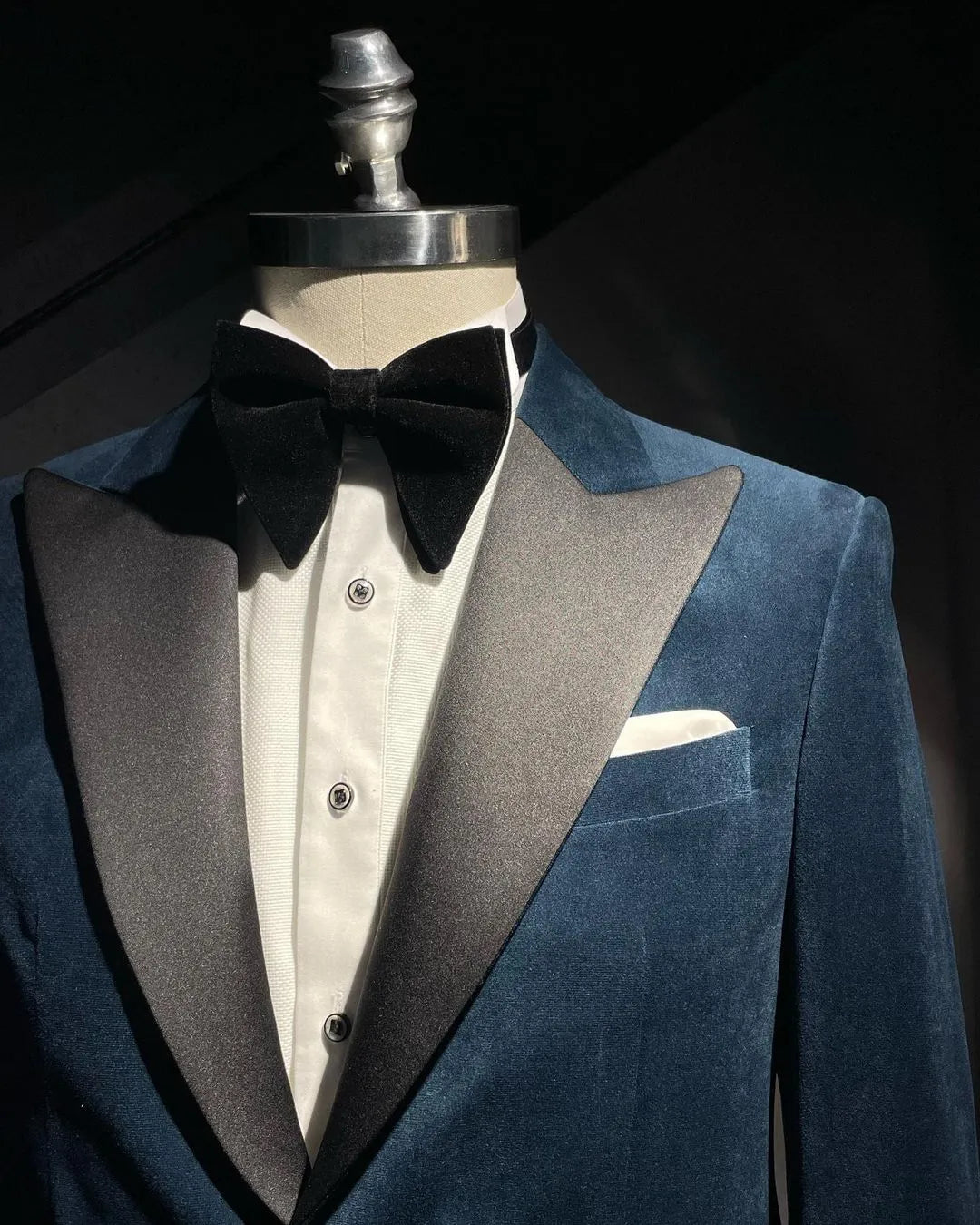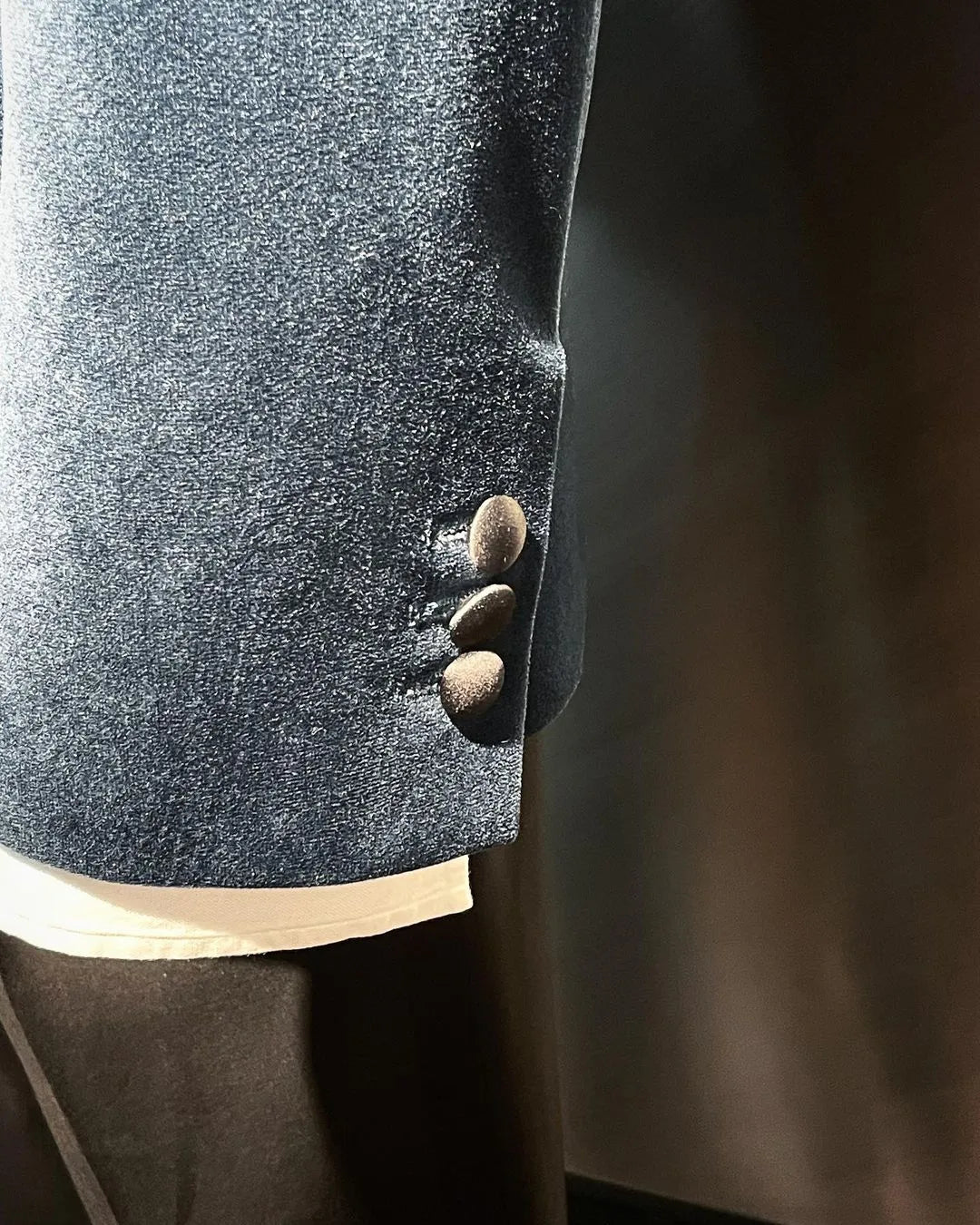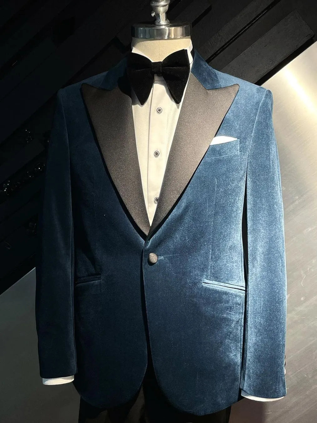 Men Suit Sets Blue Velvet Blazers For Men Groom's Wedding Dress Dress Peaky Blinder Costumes 2 Pieces