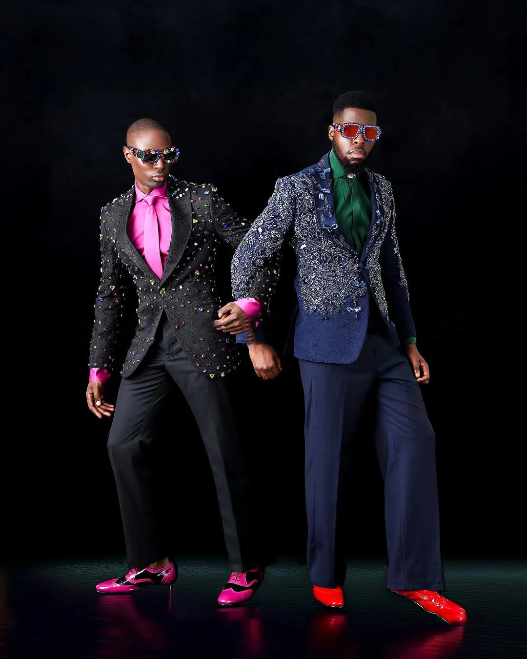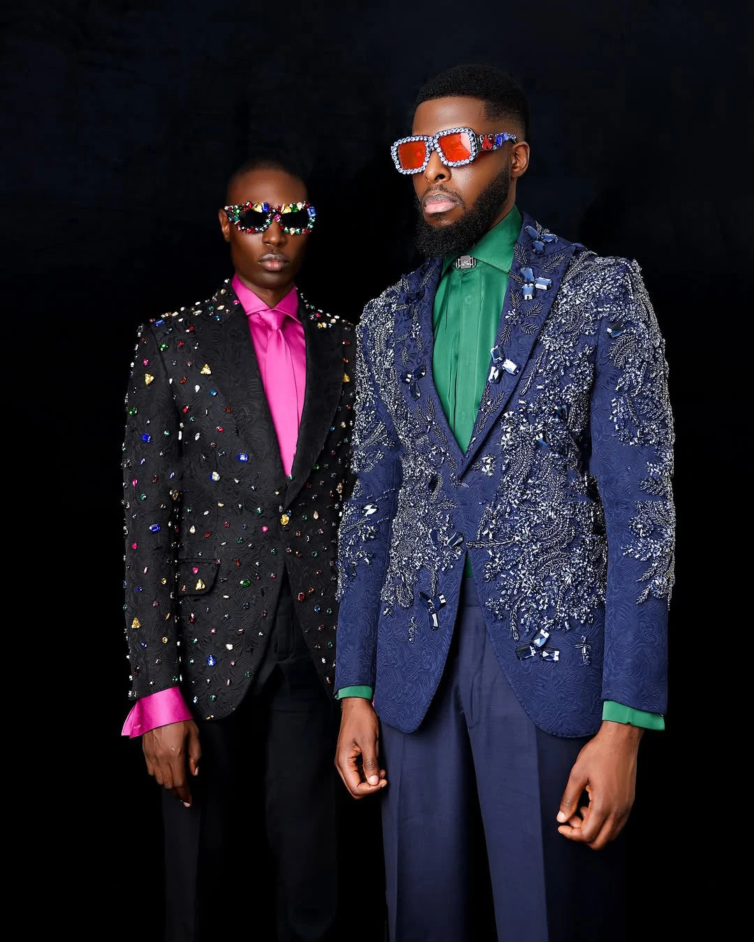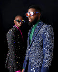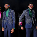 Men Suits Peaked Lapel Crystal Beaded Tailor-Made 2 Pieces Set Jacket Jacquard Appliques Blazer Groom Customized Coat Pants