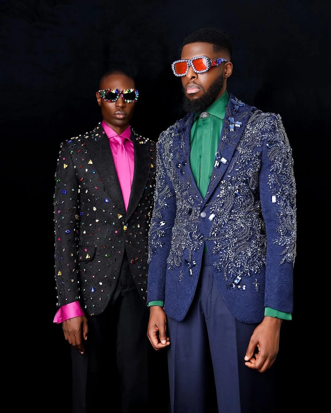 Craft a memorable entrance with this exquisitely tailored Men’s 2-piece suit featuring a striking peaked lapel, crystal beading, and luxurious jacquard appliques. Designed for grooms, groomsmen, or any man seeking an elevated formal look, this blazer-and-pants set blends artisanal embellishment with modern tailoring for a look that is both sophisticated and show-stopping.