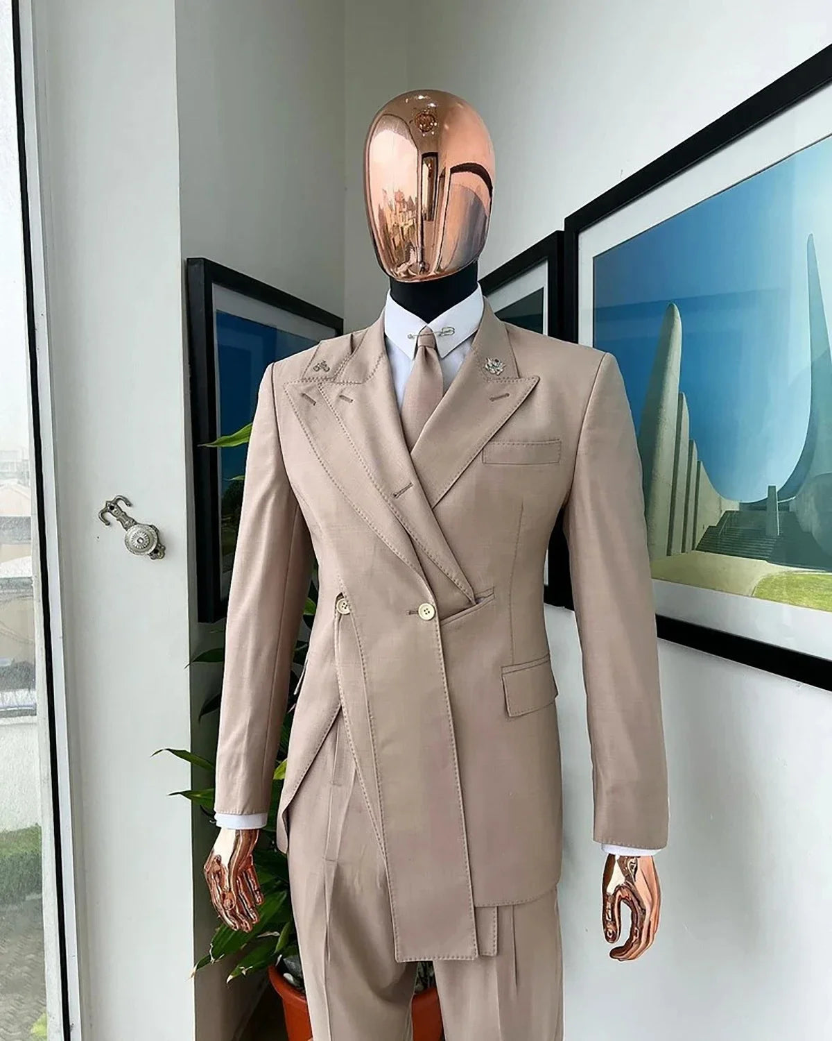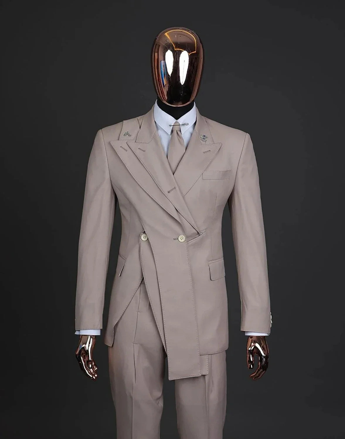 Elevate your formal wardrobe with this impeccably tailored Men Suits Tailor-Made 2 Pieces Set — a distinguished ensemble designed for the man who demands a perfect fit, refined details, and a strong sartorial statement. This set includes a uniquely styled blazer featuring a distinctive peaked lapel and a pair of classic black trousers, expertly cut to flatter and move with you through every event, from groom and groomsmen duties to evening parties and black-tie affairs.