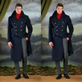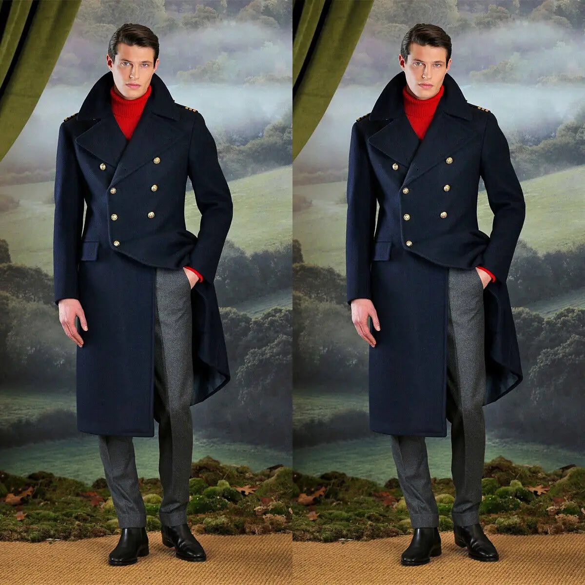 Men Dark Blue Classic Fall Overcoat Long Jacket Heavy Double Breasted Wedding Coat Tuxedos