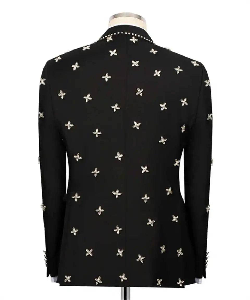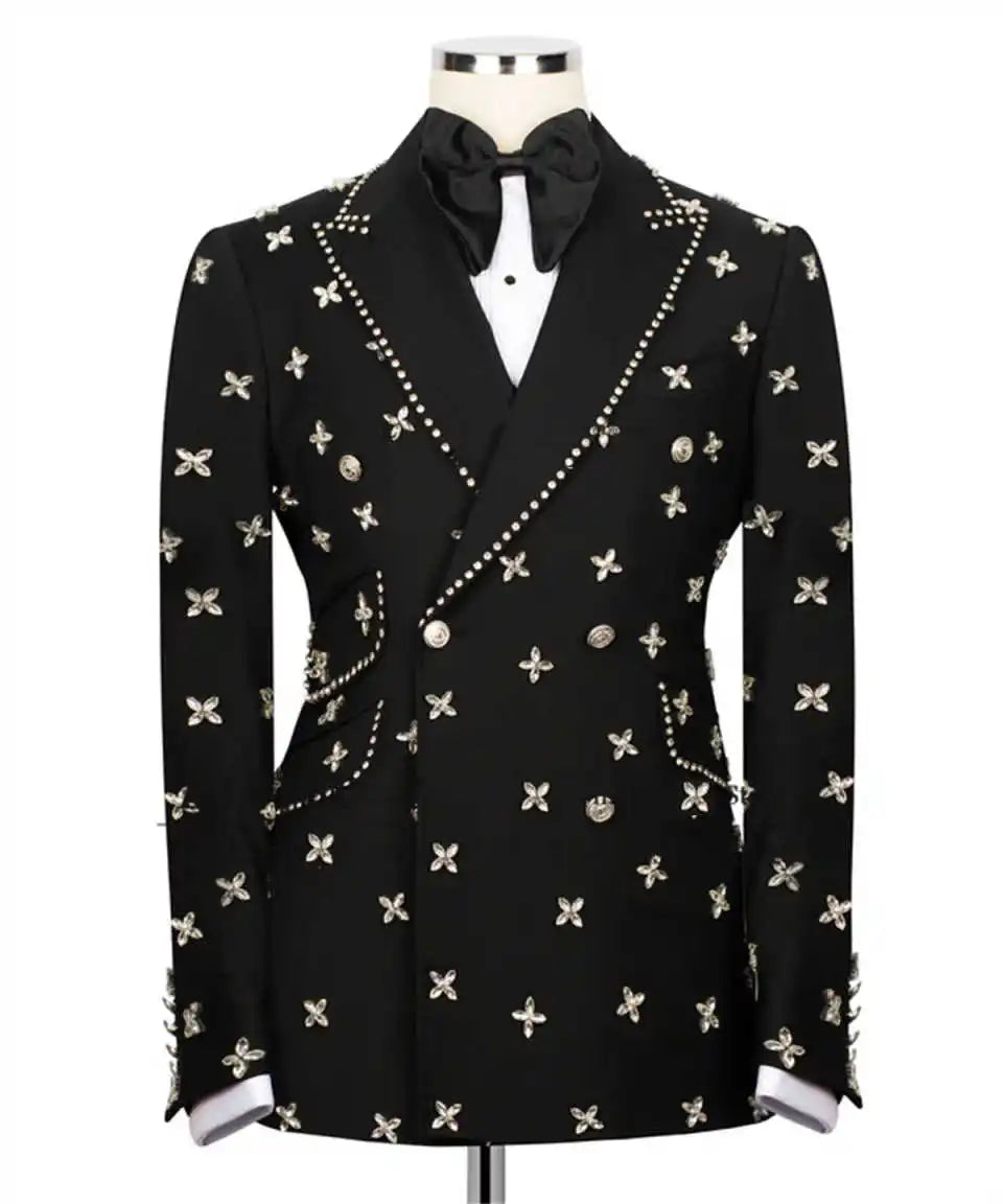 Elevate your formal wardrobe with this exquisitely tailored two-piece suit designed for grooms and distinguished guests. Combining meticulous handmade beadwork, precision slim-fit tailoring, and full customization, this tuxedo delivers statement-making elegance for weddings, formal occasions, and upscale parties.