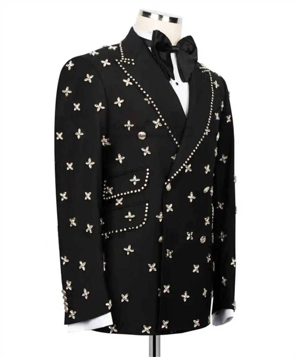 Mens Suit 2 Piece Jacket Pants Handmade Beads Customized Slim Fit Groom Tuxedo Wedding Formal Occasions Tailored Party Wear