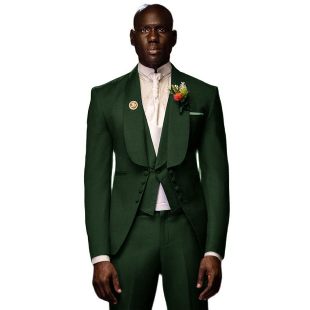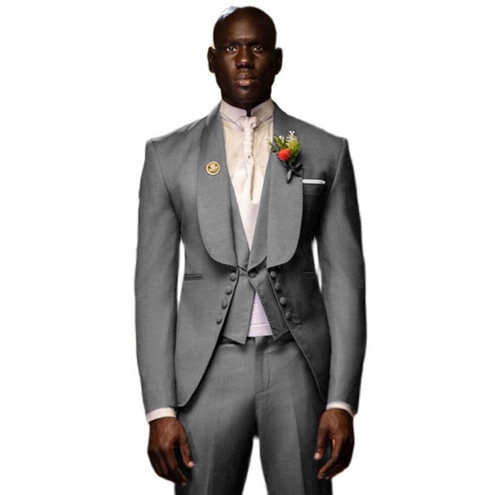 Men's Suit 3-Piece Wedding Groom Tuxedo Party Dress Prom Long Jacket Shawl Collar Blazer + Pants + Vest Business Suit Set
