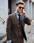Men Suits Costume Homme Brownish 3Pcs Wedding Suits Prom Dress Vintage Tailored Blazer Men Clothes Jacket Pant