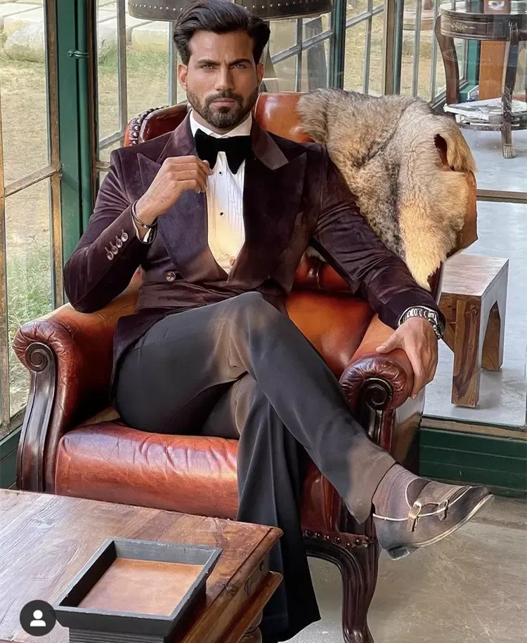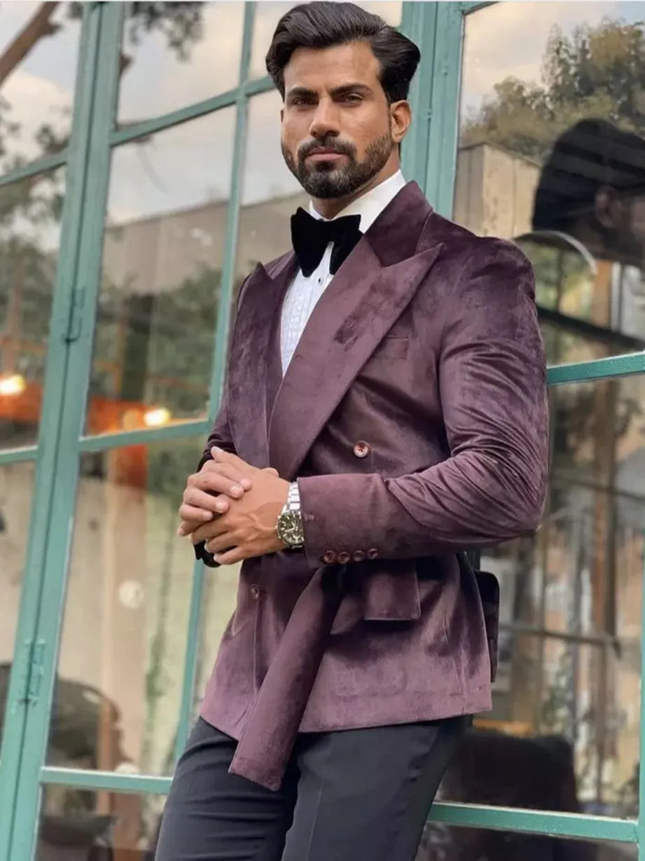 Men's Suits Single-breasted Velvet Fruit Collar 2Pcs Tuxedo Coat+ Trousers Suit Set for Wedding Prom Terno Design New
