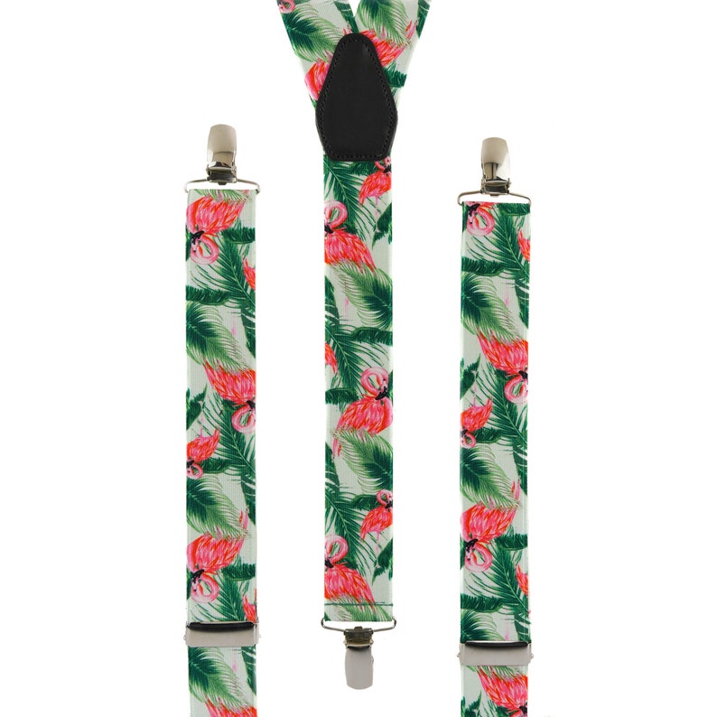 Men Suspender // Braces for Men // Tropical Flamingo Trouser Braces with Satin Finish // Pool Party // Handmade Trouser Suspenders