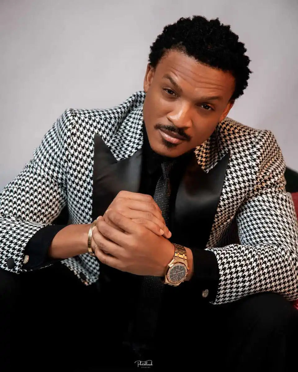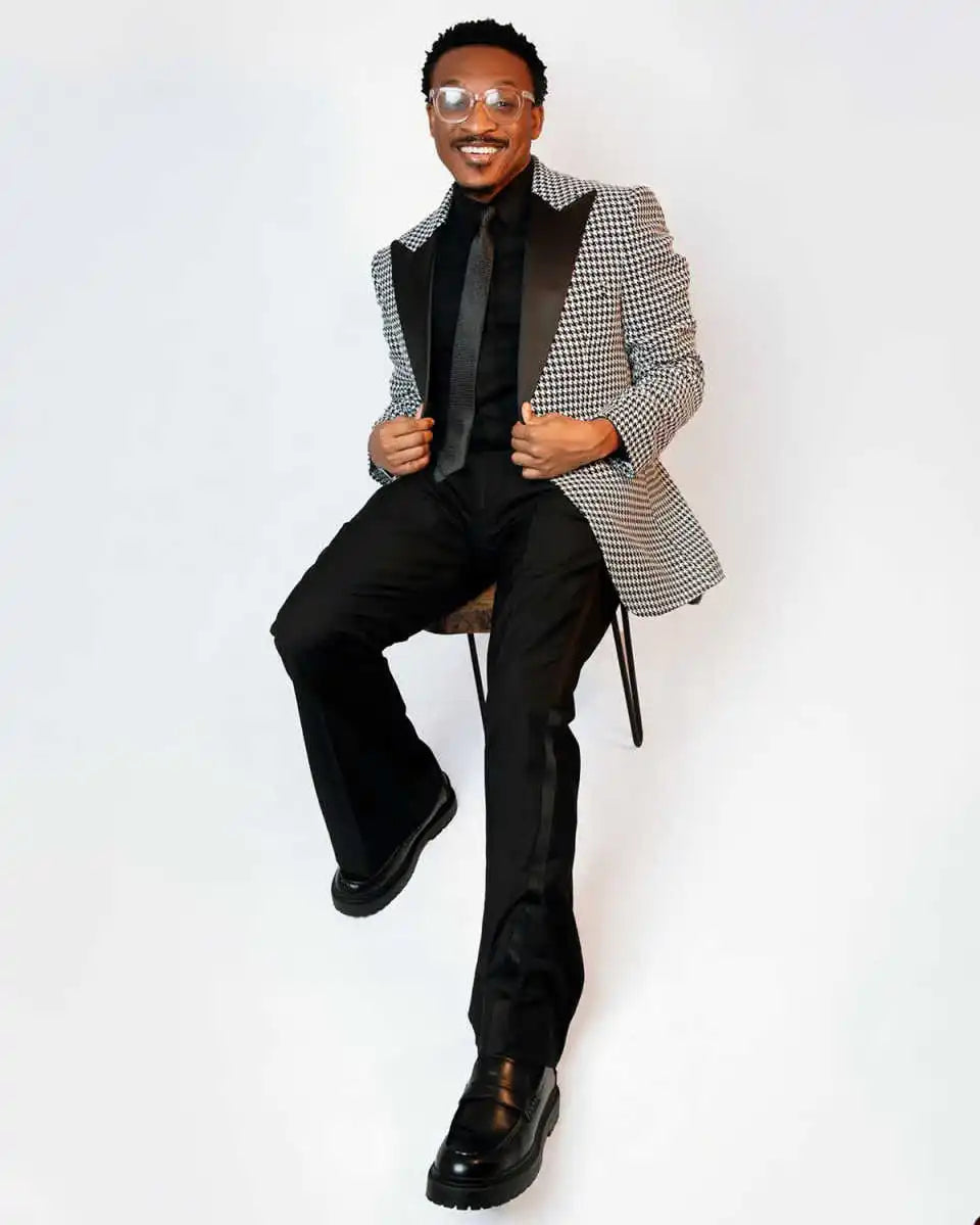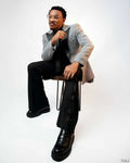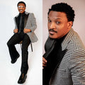A contemporary, tailored two‑piece suit featuring a classic houndstooth weave and a sharp peaked lapel. Designed for grooms who want a refined, textured look that reads modern on the dance floor and timeless in photos. Jacket and matching trousers included.