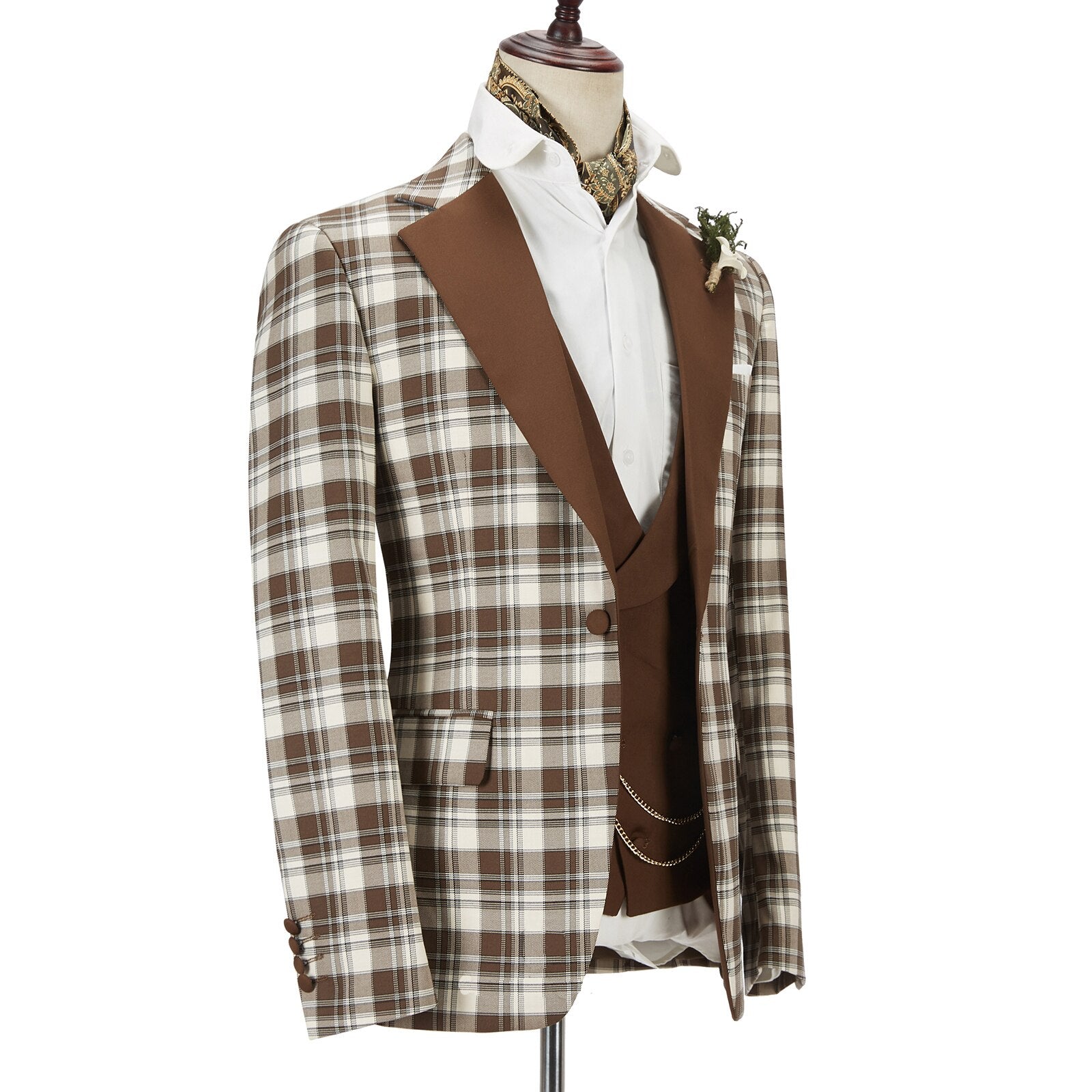 Modern Men Suits With Lattice Three-Pieces Shawl Lapel Designer Wedding Tuxedos colorful men New Suit Design
