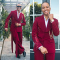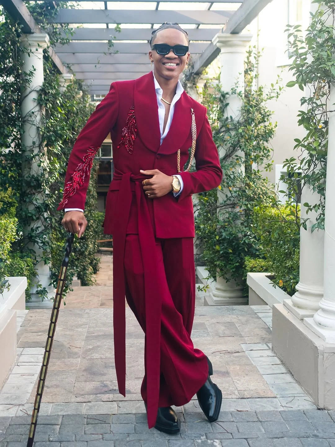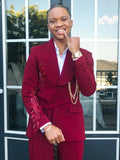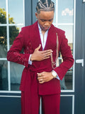 A contemporary take on wedding and evening wear: this tailor‑made 2‑piece suit features a shawl lapel blazer with decorative appliques, integrated belt detail, and sequined accents—designed for grooms and style‑forward men who want modern tailoring with couture touches. The set includes a customized jacket and coordinating trousers, made to your measurements for a sharp, comfortable fit.