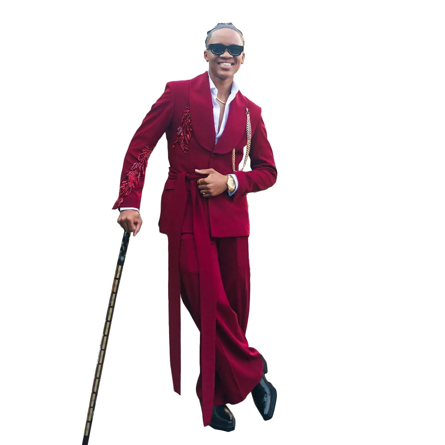 Modern Men's Suit Shawl Lapel Tailor-Made 2 Pieces Set Jacket Appliques Blazer with Belt Sequins Groom Customized Coat Pants