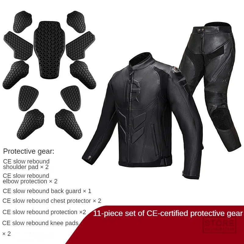 Men's Black Leather Motorcycle Jacket and Pants Set