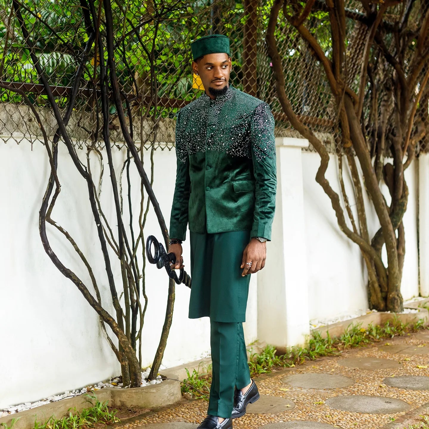 Elevate your formal wardrobe with this exquisite Muslim men’s suit — a tailor-made, two-piece ensemble expertly crafted to combine traditional Middle Eastern elegance with contemporary design. The set includes a single-breasted jacket and matching pants, both fully customizable to your measurements and style preferences for an impeccable, made-to-order fit. Constructed from sumptuous velvet, the fabric offers a rich, tactile sheen and a luxurious drape that flatters every silhouette while providing comfortable warmth and a refined finish.