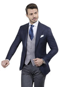 Navy Blue Coat With Grey Vest Wedding Men's Suits 3pcs(Jacket+Stripe Pants+Vest+Tie)Slim Fit Italian Style Groom Blazer Trousers