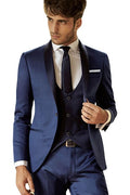 Navy Blue Shawl Lapel Formal Men Suits Coat Blazer Trousers Slim Fit Prom Groom 3Pcs Jacket+Pants+Vest