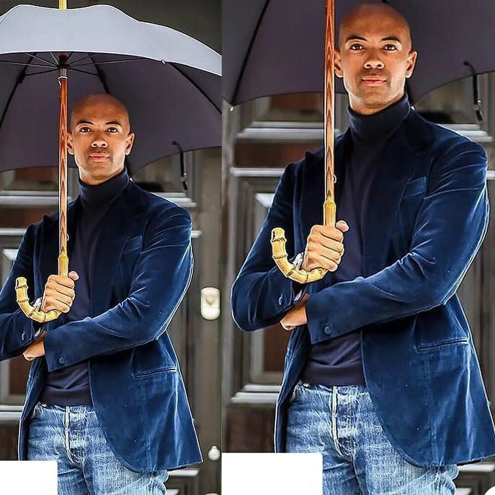 Navy Blue Velvet Blazer for Men Slim Fit Peak Lapel Men Suit Jacket Smoking Jacket 1 Piece Italian Style Fashion Coat