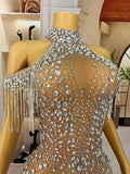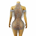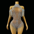 New Shining Rhinestones Crystals Chain Off-the-shoulder High Forks Women Party Singer Dancer Stage Perform Costume