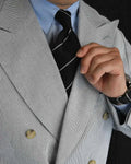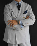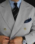 Make a striking entrance with the Pinstriped Elegant Men Wedding Suit, a refined 2-piece ensemble designed for grooms and distinguished guests who demand classic tailoring with a contemporary edge. This sophisticated double-breasted tuxedo features a sharp peak lapel that draws the eye and adds authoritative structure to the silhouette. Slim, evenly spaced pinstripes run the length of the blazer and trousers, imparting a timeless, business-inspired elegance that pairs perfectly with formal wedding themes, upscale parties, and black-tie celebrations.