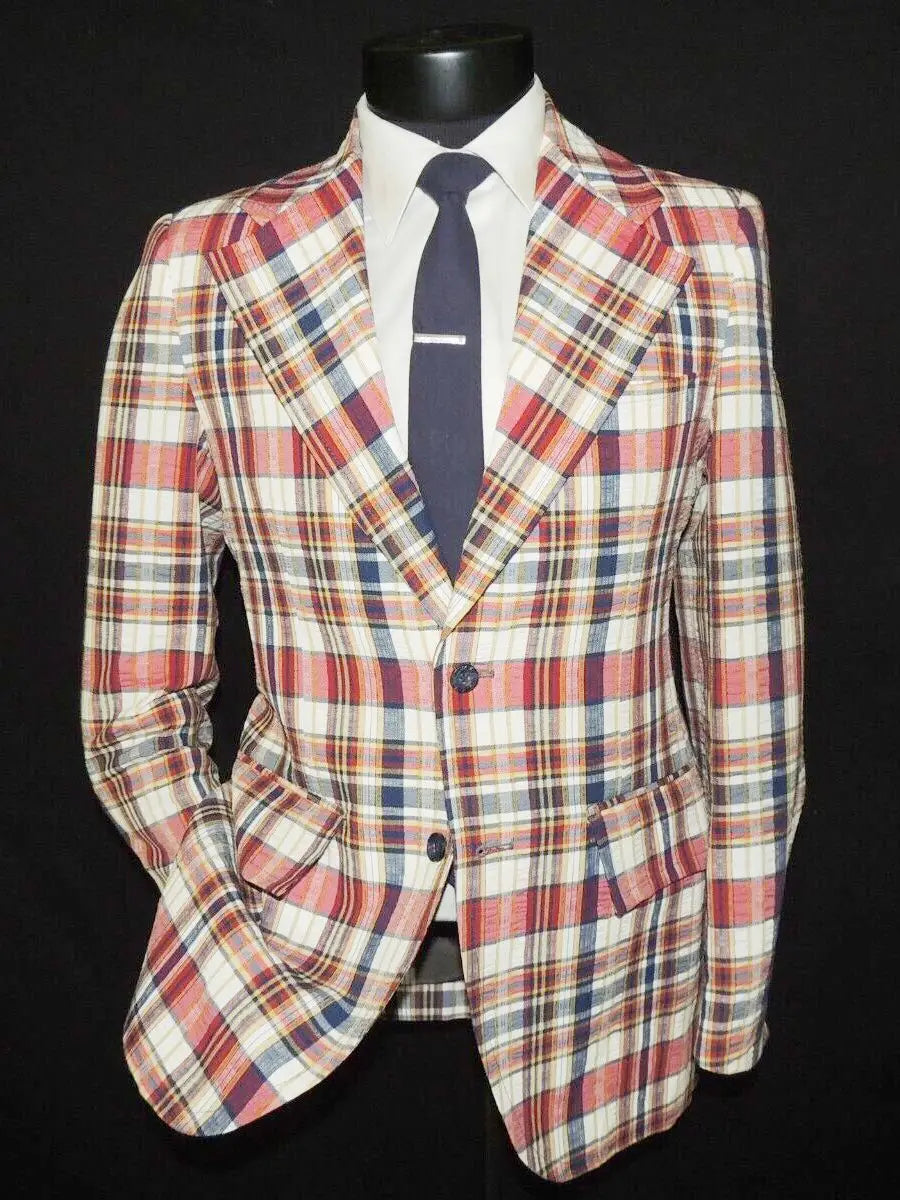 Plaid Men Wedding Coat Notched Lapel Tuxedos Slim Fit Groom Wear Business Office Blazer Only One Jacket