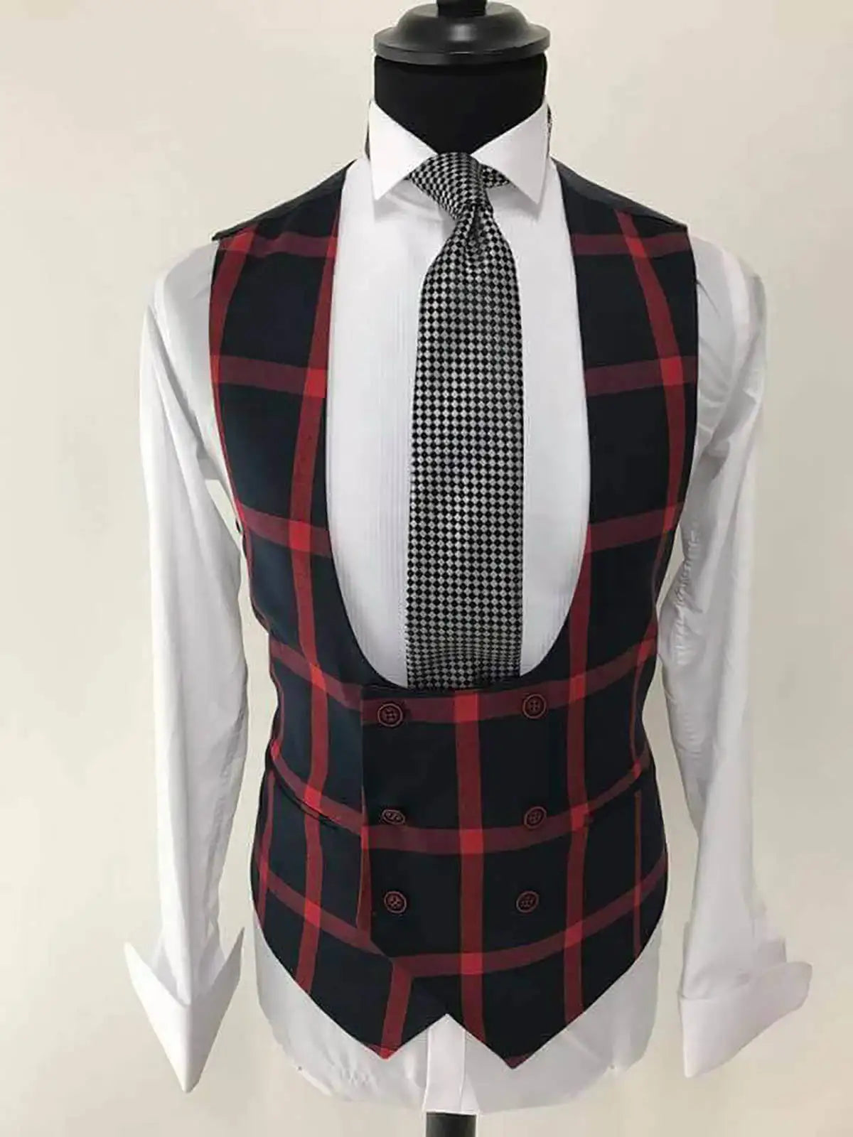 Make a distinctive and stylish entrance with this Plaid Men Wedding Suit set: a modern, slim-fit two-piece ensemble featuring a notched lapel jacket and a coordinating vest. Perfect for grooms, groomsmen, prom attendees, and professionals who want an eye-catching yet elegant look, this suit blends classic tailoring with contemporary patterning for memorable photos and confident presence.