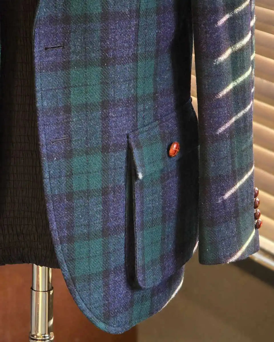A refined, versatile plaid woolen blazer designed for autumn weddings, office events, and evening parties. This single‑breasted peaked‑lapel coat (blazer only) blends classic tailoring with seasonal warmth — ideal for grooms who want a distinctive, photo‑ready jacket without purchasing a full suit.