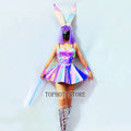 Purple Laser Short Dress Headgear Anime Cosplay Costume Women Bar Nightclub Gogo Sexy Stage Wear Halloween Party Festival Outfit