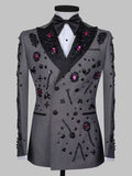 Purple Men Suit Set 2 Piece Blazer+Pants Trousers 3D Flower Cotton Customized Formal Office Jacket Groom Wedding Tuxedo Coat