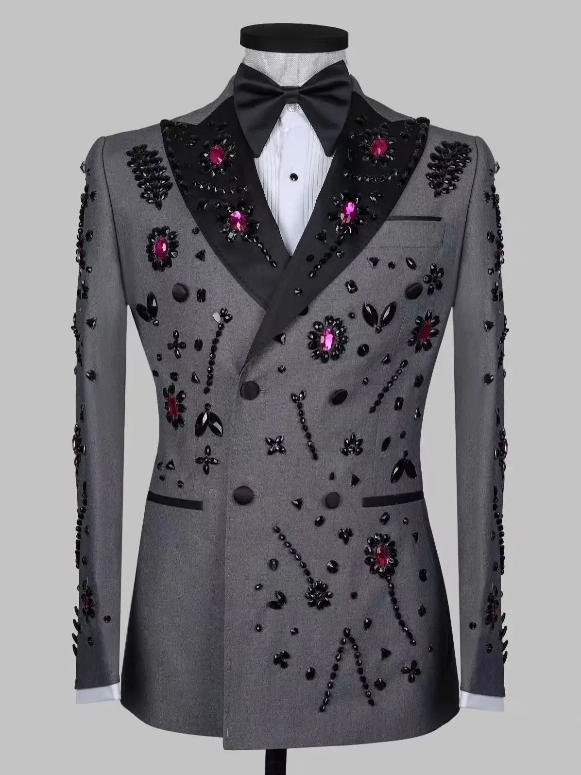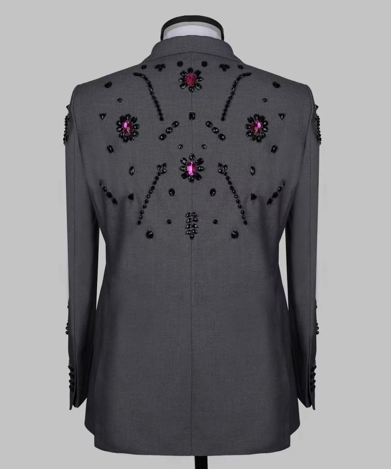 Make a memorable entrance with this Purple Men Suit Set — a refined two-piece ensemble that blends classic tailoring with contemporary floral artistry. Constructed from premium cotton fabric, the blazer and trousers offer breathable comfort, natural hand feel, and a crisp structure that holds its silhouette through every occasion. The blazer presents a modern, slim cut with a single-breasted front, tasteful notch lapels (customizable to peak if preferred), and precision tailoring that sculpts the shoulders and waist for a flattering profile. The trousers are tapered for a clean, polished legline with a flat front and neat finish that pairs seamlessly with dress shoes or stylish loafers.
