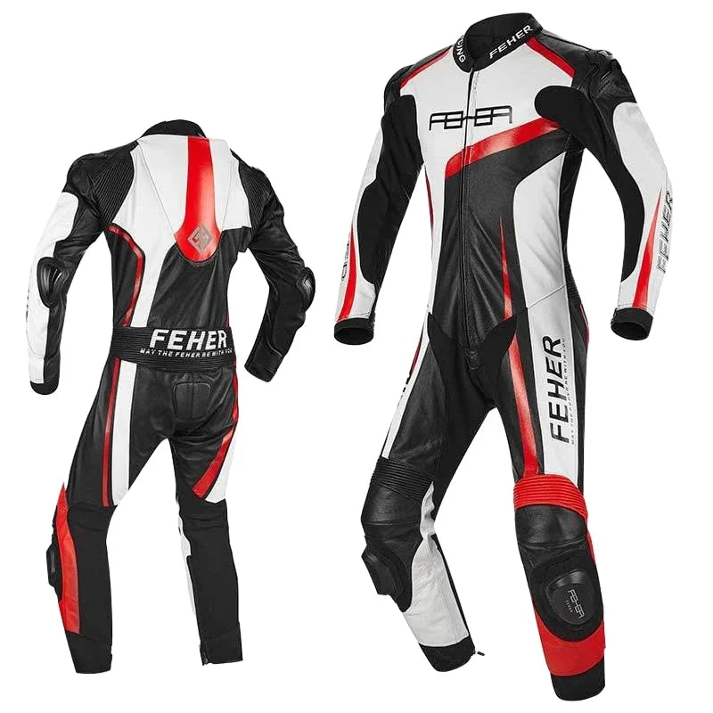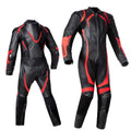 Men's Black and Red Full-Body Motorcycle Racing Leather Suit with Protective Padding