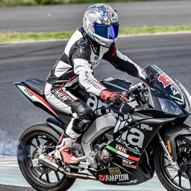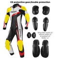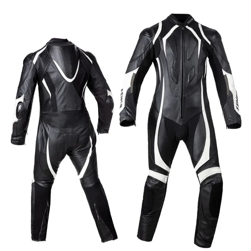 Gear up for your next off-road adventure with this one-piece racing suit designed for motorcycle enthusiasts. This protective clothing is essential for men who enjoy kart riding and off-road motorcycle adventures. The durable leather jacket provides the necessary protection for motorcyclists, ensuring safety and comfort on the track. Stay safe and stylish with this kart rider suit that combines functionality with a sleek design for the ultimate riding experience.