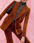 Women Sets Warm Corduroy Thick Tuxedos Evening Party Blazer Formal Wear For Wedding (Jacket+Pants)