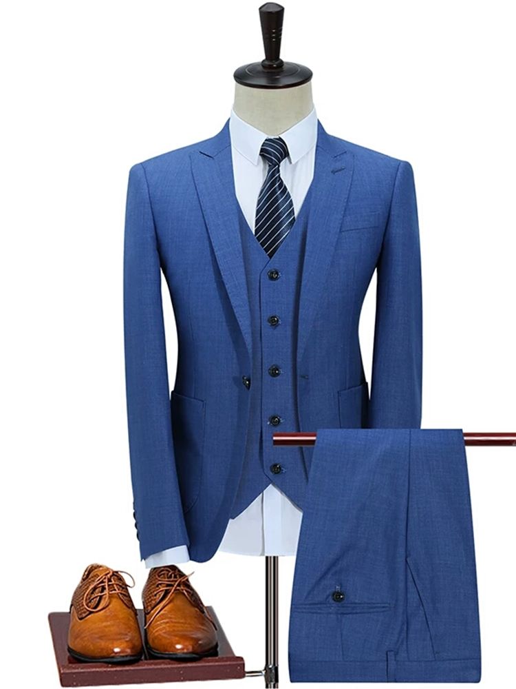 Royal Blue Wedding Clothes Outfit Peaked Lapel Blazer Trousers Men Suit Classic Style 3pcs