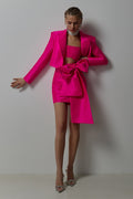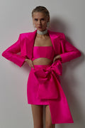 Satin Silk Women Blazer Suits Short Jacket Big Bow Evening Party Ladies Skirts Dressing For Wedding Loose Two Pieces