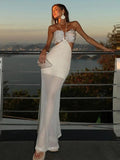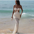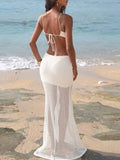 Sequins Patchwork Halter Hollow Out Dress Women Backless Off Shoulder Slim See Through Summer Beach Dresses Evening Chic