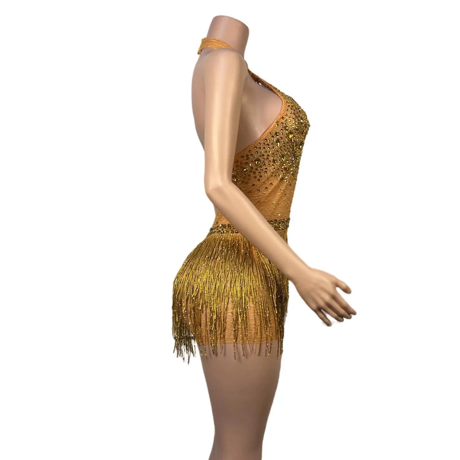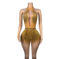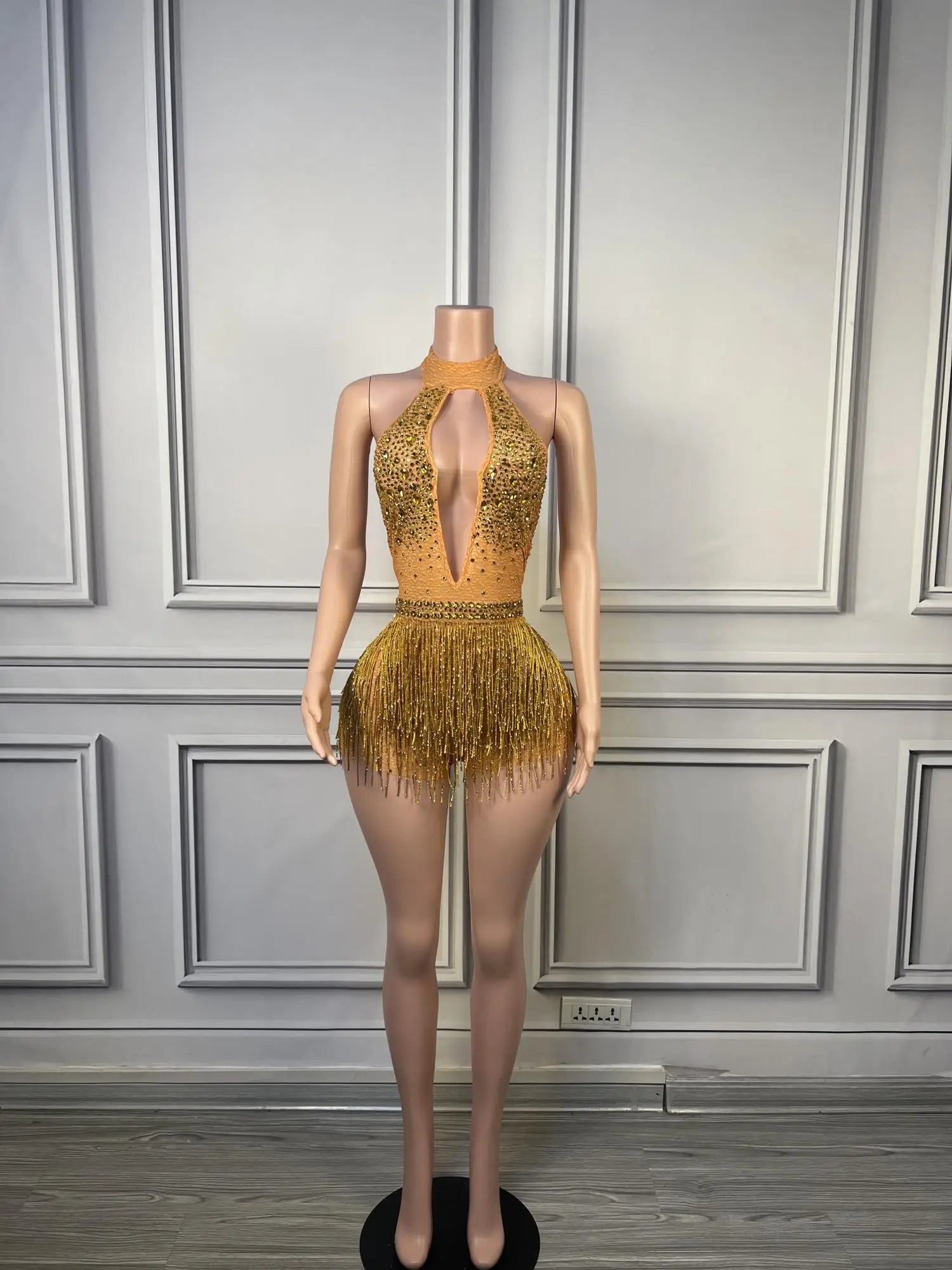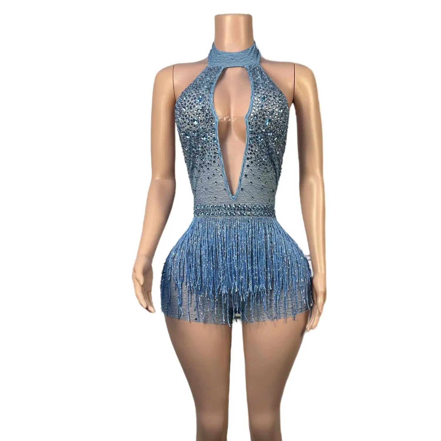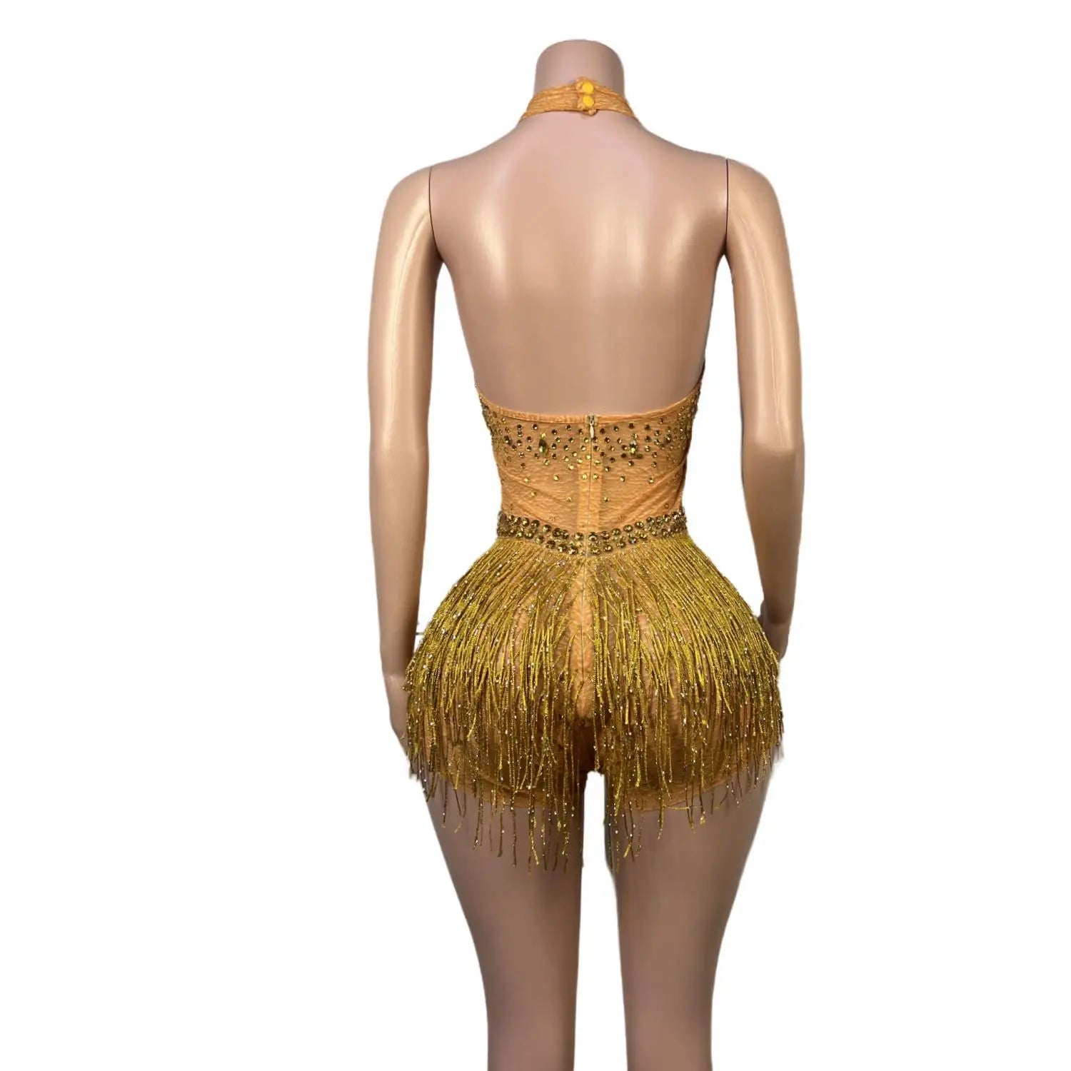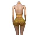 Glamorous Backless Fringe Bodysuit with Rhinestones for Dance, Performance, and Nightclub Events