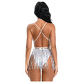 Sexy Bikini Set Pole Dance Costume One Piece Bodysuit Backless Tassel Hip Scarf Beach Party Rave Outfit Gogo Dancer Suit White