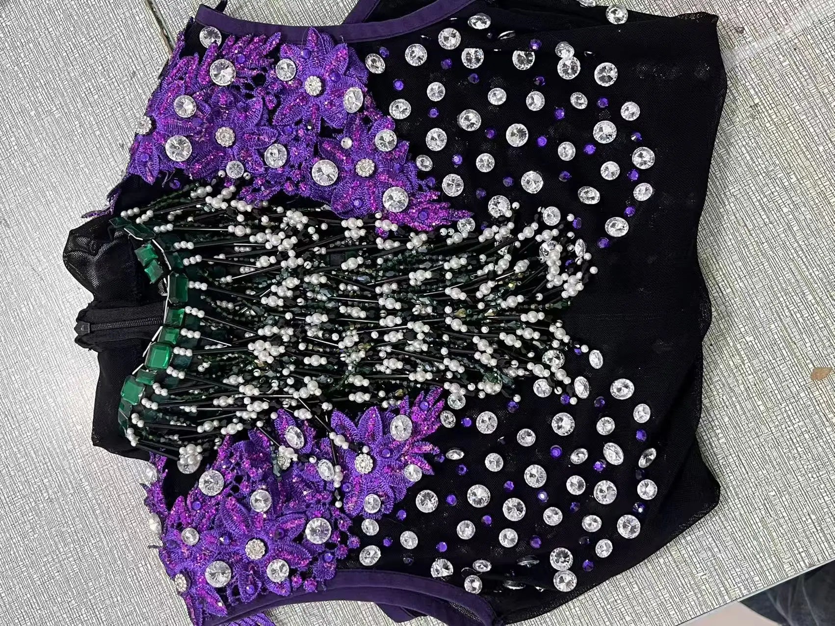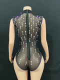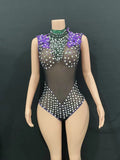 Sexy Black Mesh Dress, Purple High-altitude Dress, Birthday Party, Tassel Rhinestone Luxury DJ