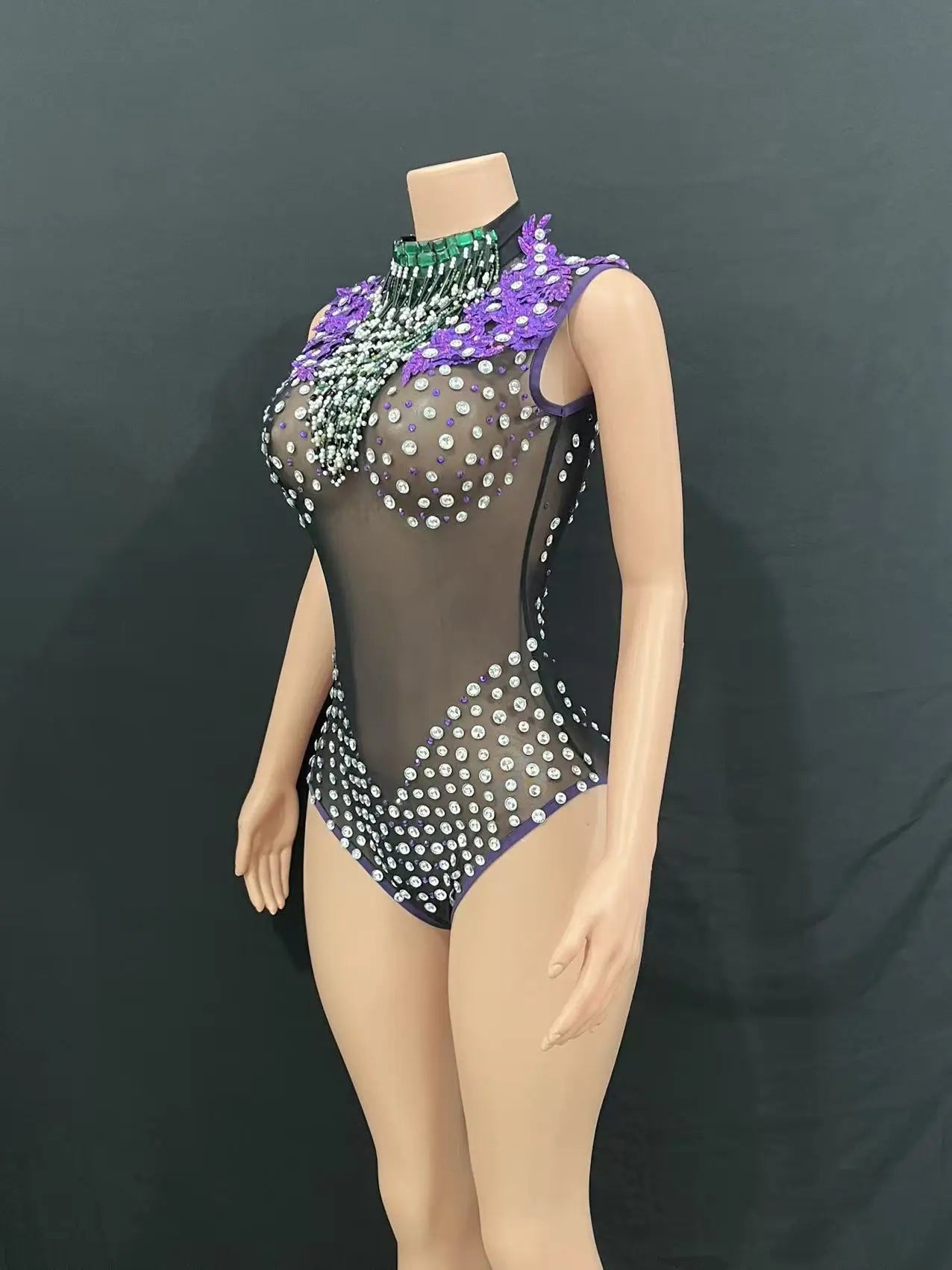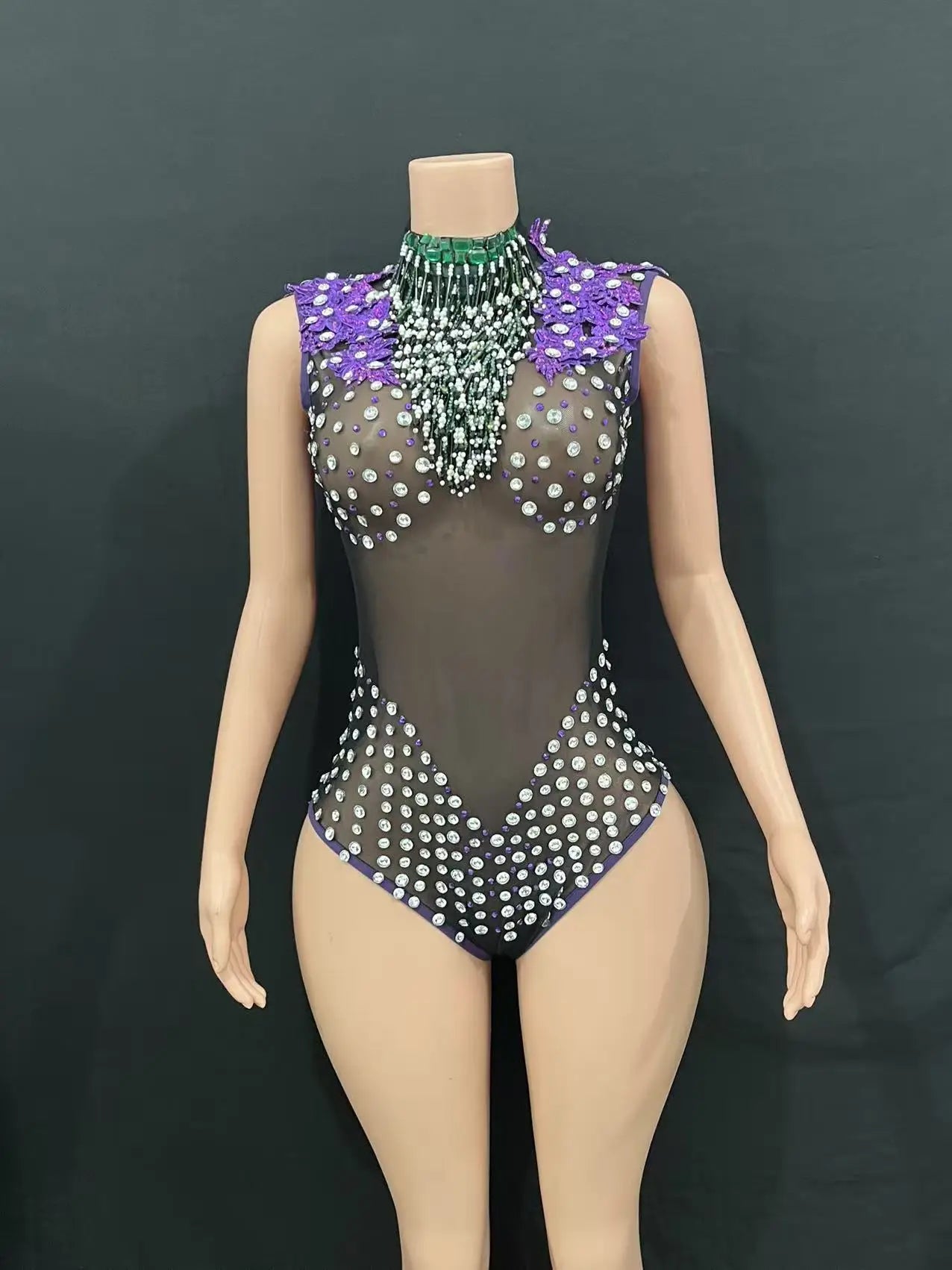 Make a bold statement at any party or event with this luxurious DJ dress collection. The sexy black mesh dress features a figure-hugging silhouette and shimmering details, perfect for an eye-catching entrance. The striking purple high-altitude dress offers dramatic flair, while sparkling tassel and rhinestone embellishments add a touch of opulence. Ideal for birthday parties, club appearances, or DJ performances, these dresses ensure you stand out in style.