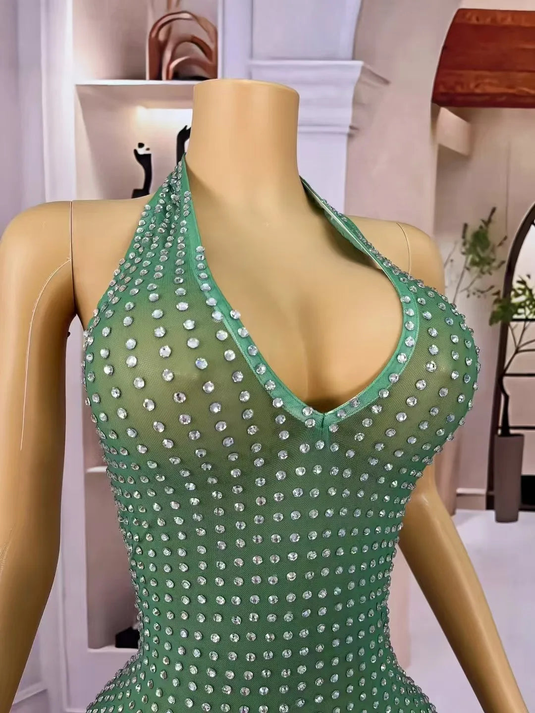 Turn heads and steal the spotlight with this Sexy Blingbling Rhinestones Halterneck Gown — a dazzling statement piece designed for women who want to shine at evening events, proms, parties, stage performances, and photoshoots. The gown features a sultry V-neckline that flatters the décolletage while an elegant halterneck strap supports the bodice and frames the shoulders. Fully backless, the dress reveals a dramatic sweep of skin that pairs perfectly with minimalist jewelry and an updo hairstyle, creating a bold, sensual silhouette that photographs beautifully