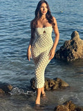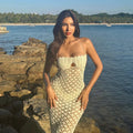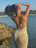 Make a statement on your summer holiday with this sexy crochet hollow out beach dress for women. Designed with a slim, body-hugging fit, this halter, sleeveless, and backless style features a lace-up detail for adjustable comfort and added allure. Perfect as a beach cover-up or a standout piece for poolside parties, this chic dress blends flirtatious charm with effortless summer elegance, ensuring you turn heads wherever you go.