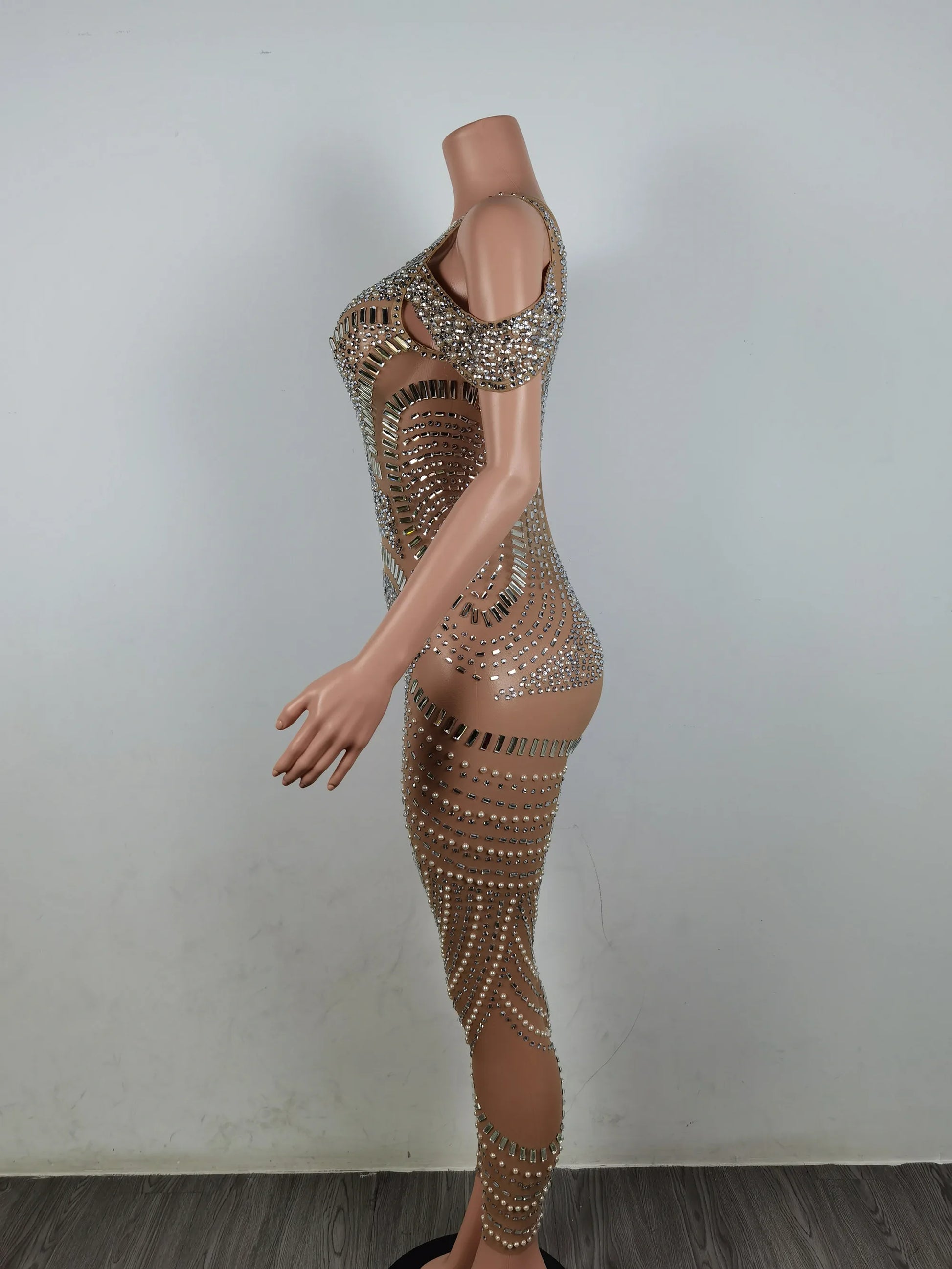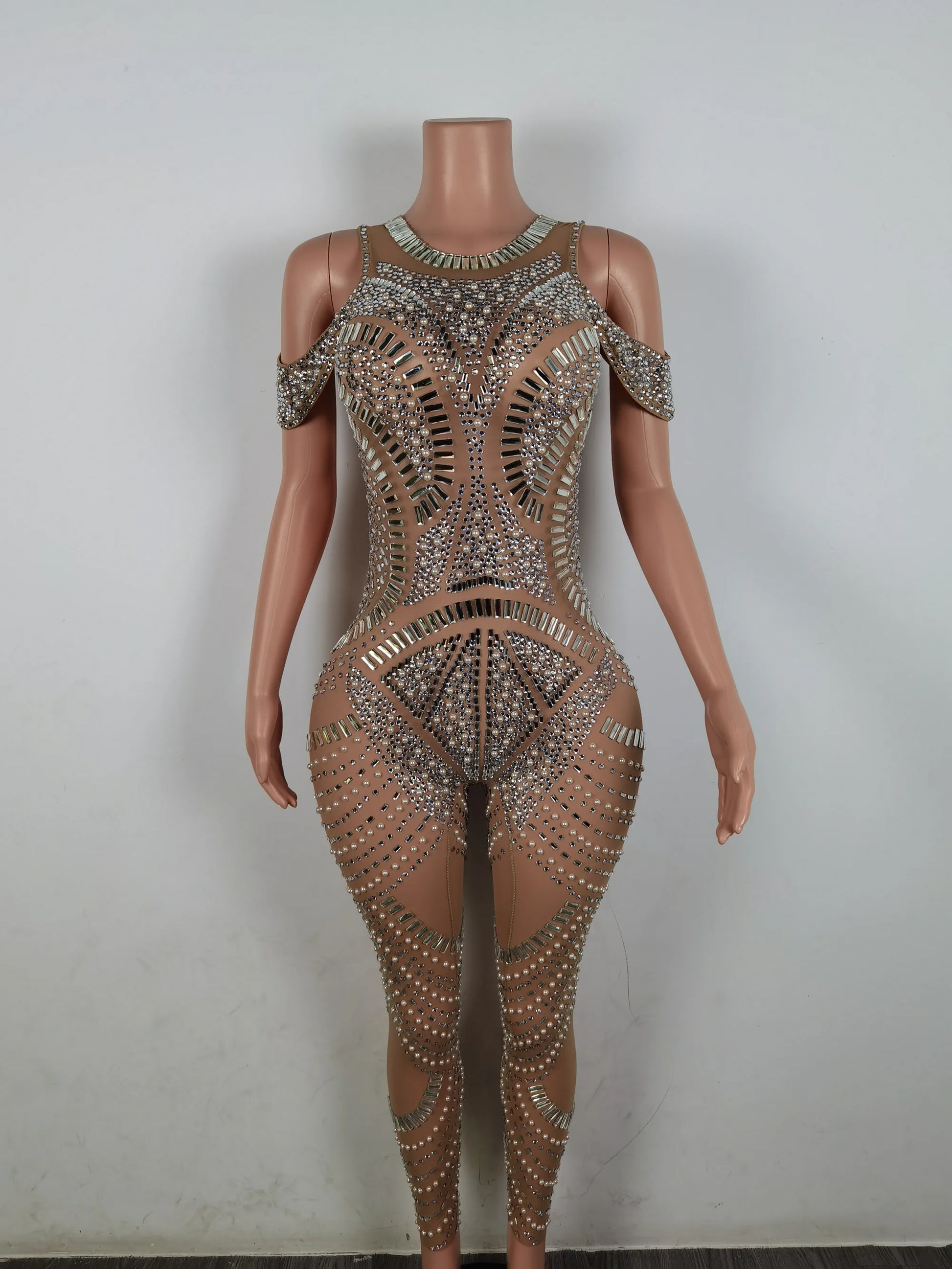 Turn heads on stage or at the club with this dazzling women’s transparent bodysuit. Featuring intricate crystal and pearl embellishments, this sexy one-piece romper is designed for maximum visual impact, perfect for pole dancing, performances, or stylish nights out. The stretchy, figure-hugging material flatters every curve and is available in plus sizes for a confident, comfortable fit. Shine bright and make a bold statement in this eye-catching dancewear leotard.