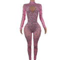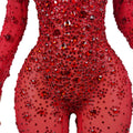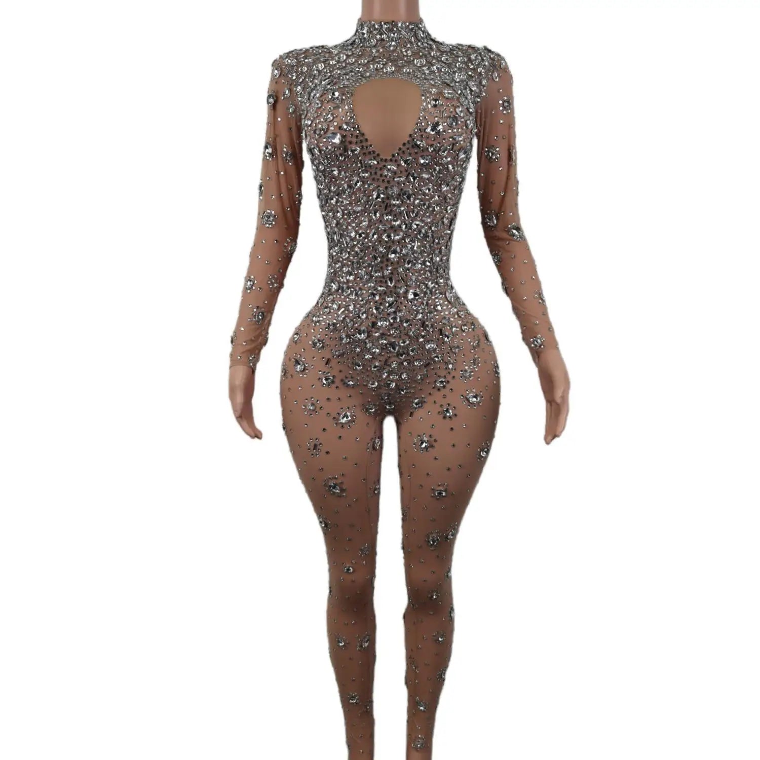 Sexy Gorgeous Perspective Rhinestone Jumpsuit Long-sleeved Tights Nightclub Singer DJ Stage Performance Clothes